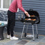 - Portable grill with two wheels and side handle for easy movement