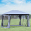 This outdoor garden pavilion is ideal for letting you and guests enjoy parties. The polyester canopy, curtains, mesh netting sidewalls and steady frame create a comfortable space which can created with an open or private feel. The large size provides lots of shelter for many people. Comes with ground stakes to attach to the ground for extra stability.