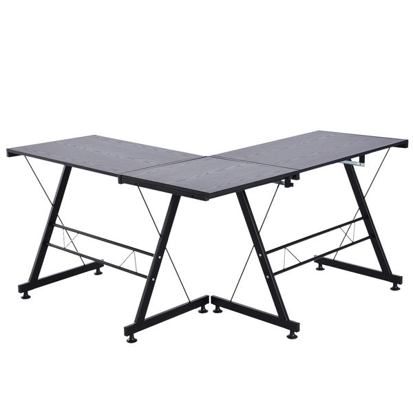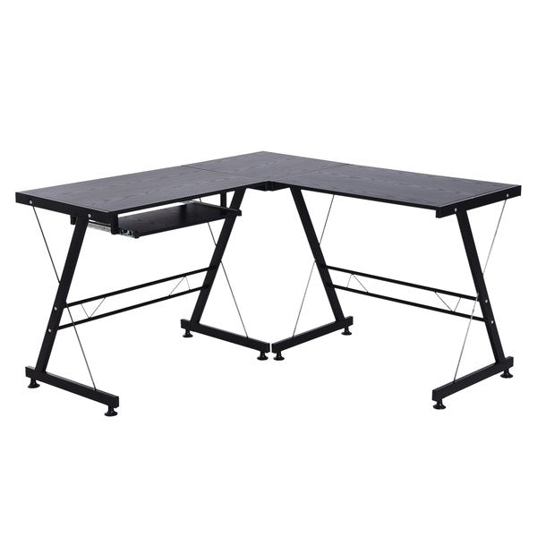 1x L Shaped Computer Desk W/ Keyboard Tray- Black