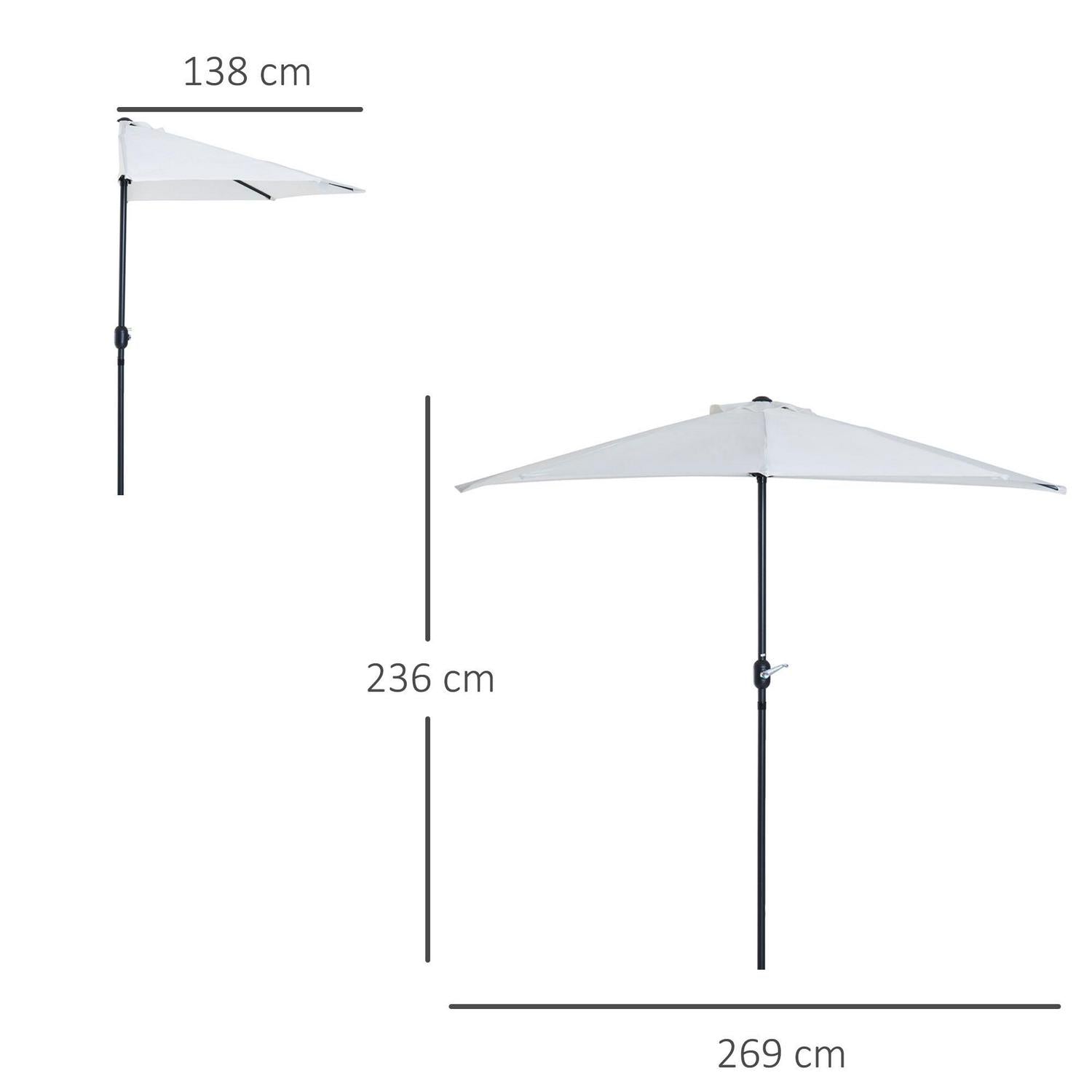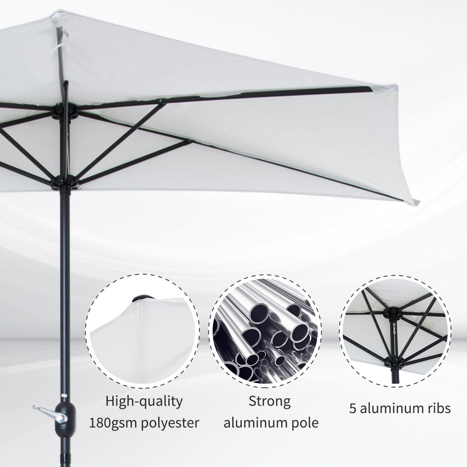 This Outsunny solar parasol is a great addition to anyone who wishes to have a balcony parasol half but has limited space. This garden umbrella is ideal for balconies or small gardens and someone who wishes to still have the illusion of a full parasol. The patio umbrella is made from an metal frame and the covering is a UV resistant waterproof PE cloth. Our sun umbrella is a great product and a great solution for any balcony or patio.