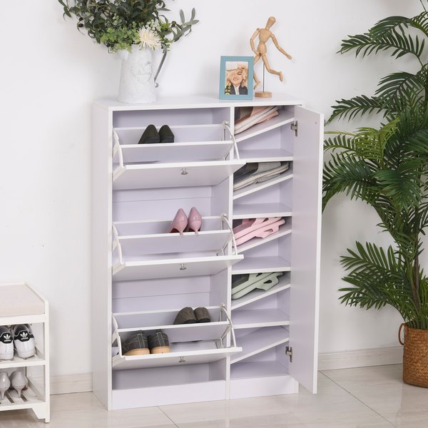 Too many shoes and worried no place to store your favorite footwear? This space-saving shoe cabinet by can solve your problem and will be a great addition for you to store your shoes and keep your room organized and neat. 3-tier flap door drawers and 5-tier storage cabinet for storing shoes of different sizes and types, best choice for small space using. E1 grade particle board for long-term use and easy to maintenance.