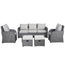 This six-piece dining set is the ultimate for satisfying relaxation in your garden. Using powder coated steel for a robust and sturdy frame, each of the two armchairs, three-seater sofa, two footstools and table is wrapped in PE wicker, which protects against mild weather-damage. Manually operated, both the armchairs in this set feature a reclining back, adjustable between 90° and 130°, with thick padded cushions placed on the seats and back of all chairs for you to sit comfortably all day long.