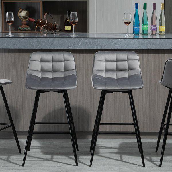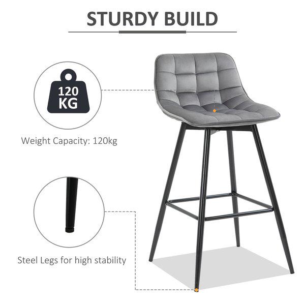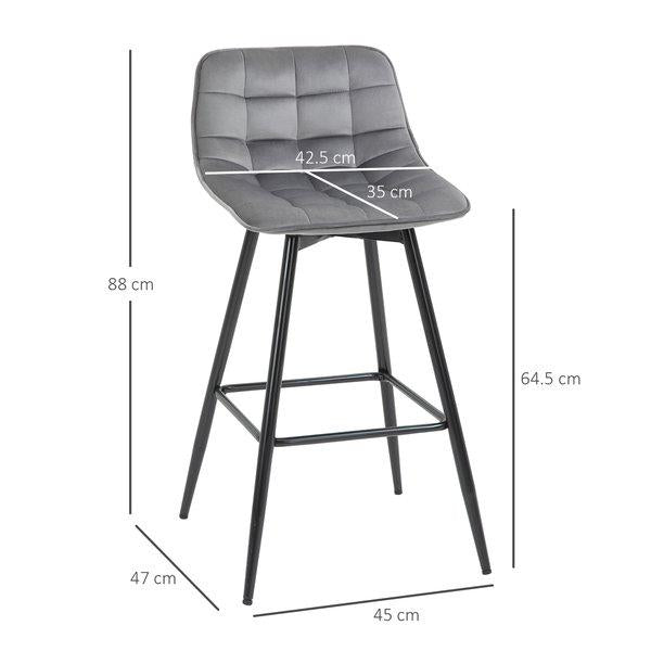 Let these two stools from do all the stylish talking for your home and beyond. Each seat is formed into an open design, where it curves gently and softly for you to sit with ease. Padded with sponge for comfort, the seats are wrapped in velvet-feel upholstery which is soft on the skin. Made from steel and formed into an 'A' shape, the base of each chair is sturdy and will ensure you are seated with complete balance. They are finished with foot bars so your legs aren't left dangling.