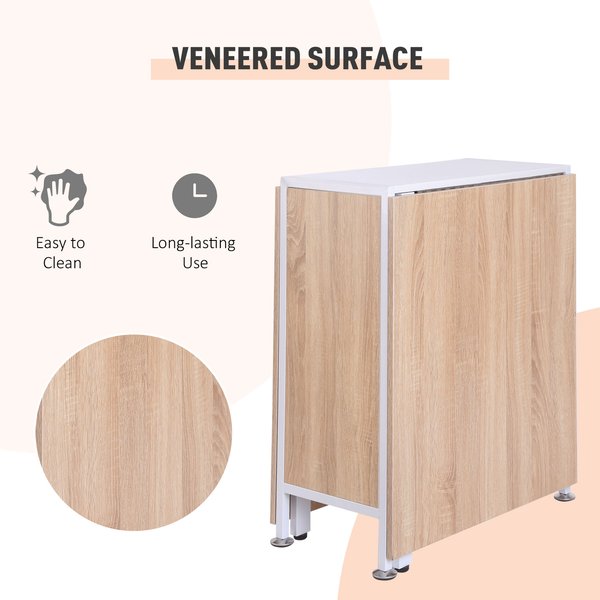 Redefine your home or office with this versatile folding table from. With its easy-to-operate folding system you can use it as a computer workstation a writing or laptop desk a corner table a wall table or else. Meanwhile it brings extra storage options with 4 shelves under the desktop helping store and organise your household accessories study and office essentials or display ornaments. Constructed from MDF board in oak colour and metal frame with white finish this desk provides superior stablity and durability while still perfectly blending with any other furniture.