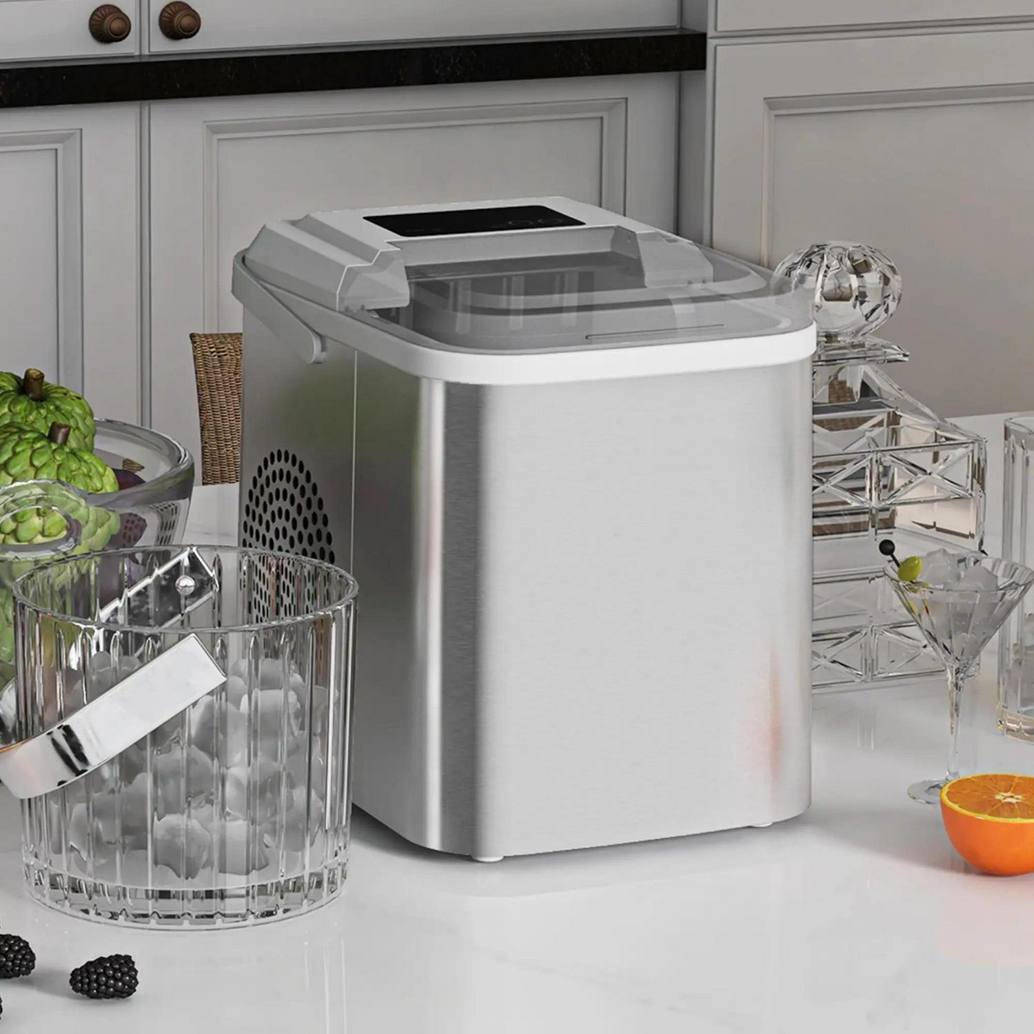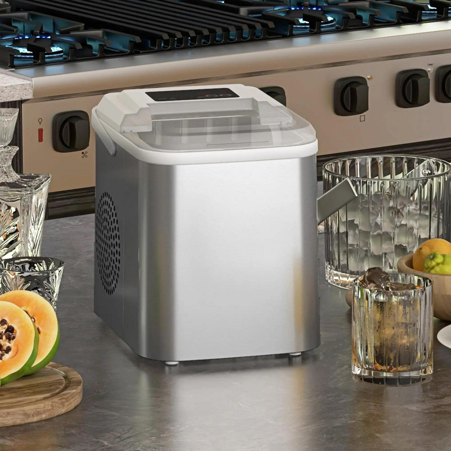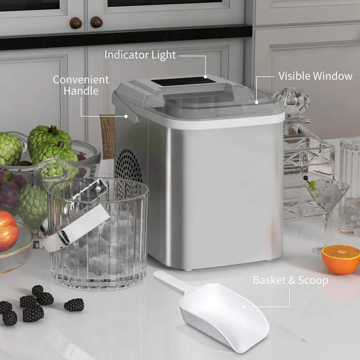 Something every party, summertime and beyond needs: an ice cube maker. Luckily, this HOMCOM ice machine has got you - no matter the space and size you have available. A compact, low working design makes it great for practically anywhere - it won't get in the way or annoy you. The 1.3 litre tank makes up to 12kg ice every 24 hours; that's 9 pieces of bullet shaped ice ever 6-13 minutes. Use the window to view how much ice has been made: very easy to see. Comes with handy basket and scoop.