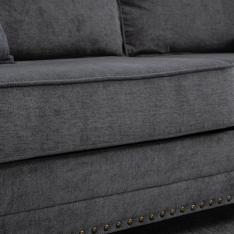 A small couch which doesn't skip the comfort. This HOMCOM piece is great for all rooms, no matter how big or small. The two-seater size provides enough room to relax with company or by yourself. Thickly padded on the seats and backs, with two cushions included for comfort. Wooden legs offer plenty of support. Linen-look upholstery looks great, with stylish studding on the front to complete.
