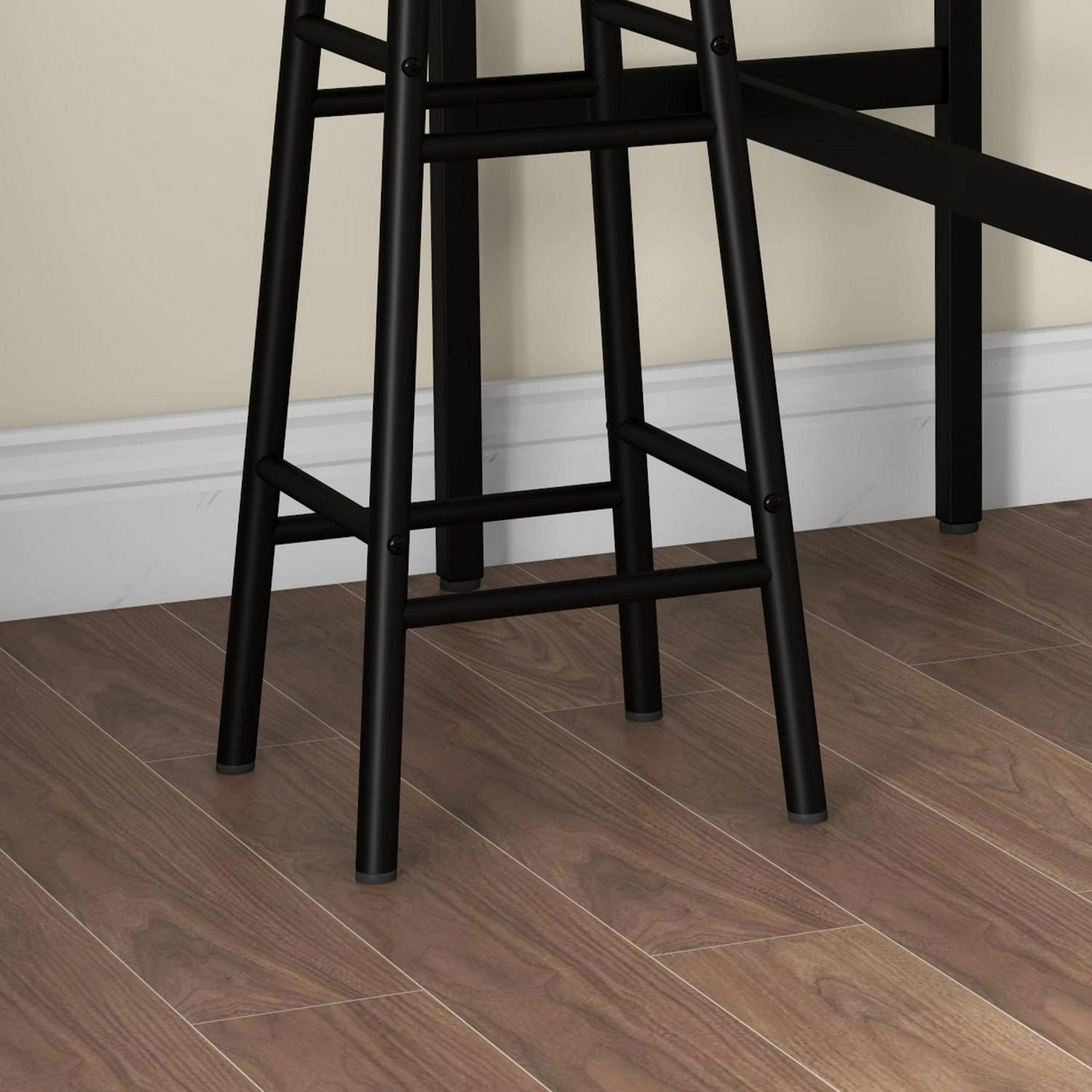 Make the most of any space - turn it into a dining spot for two. This HOMCOM bar table set comes with a tall rectangular table and two tall stools; either sit opposite each other or next to each other. The steel frames are powder coated for extra strength. Grey table top and seat pads work with the black frame for a new-wave industrial look - a striking piece for your home. Complete with handy adjustable feet.
