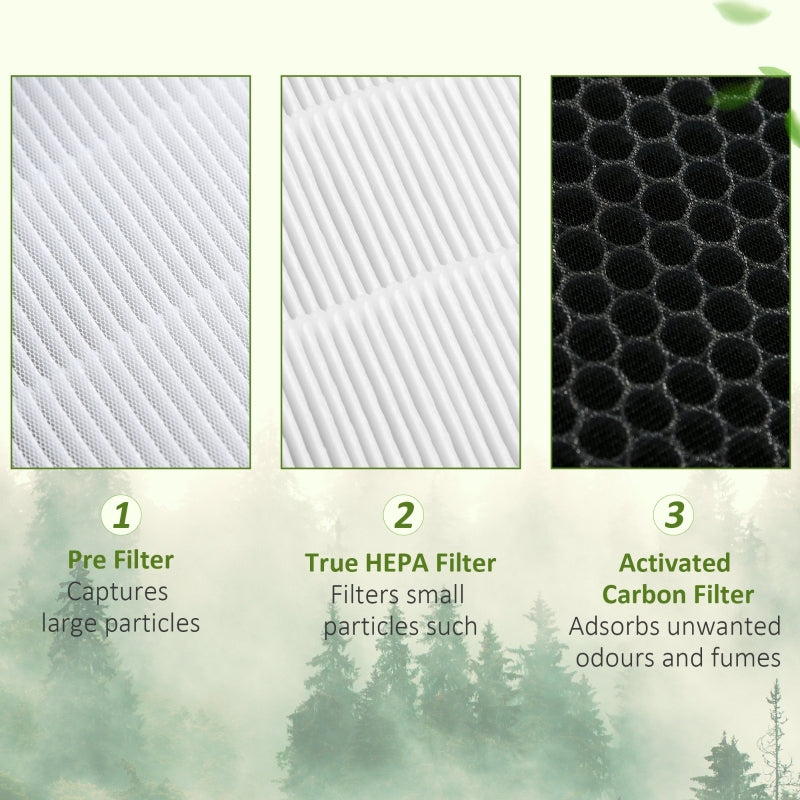 - 3-in-1 composite design, including pre-filter, H13 HEPA filter and activated carbon filter