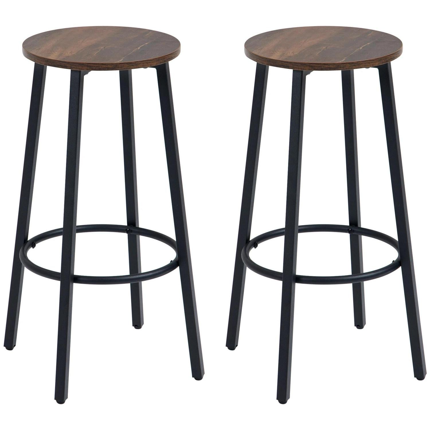 These two industrial-style kitchen bar stools from HOMCOM are great for creating impact wherever they stand. Framed from powder coated steel for a strong structure, fitted with a round bar to rest your legs comfortably. The seat surface is made from quality particle board for durability, finished in a wood-effect look. The 65 cm seat height makes it idea to pair with 89-99 cm kitchen counter tops. Set the HOMCOM bar stools at your home today!
