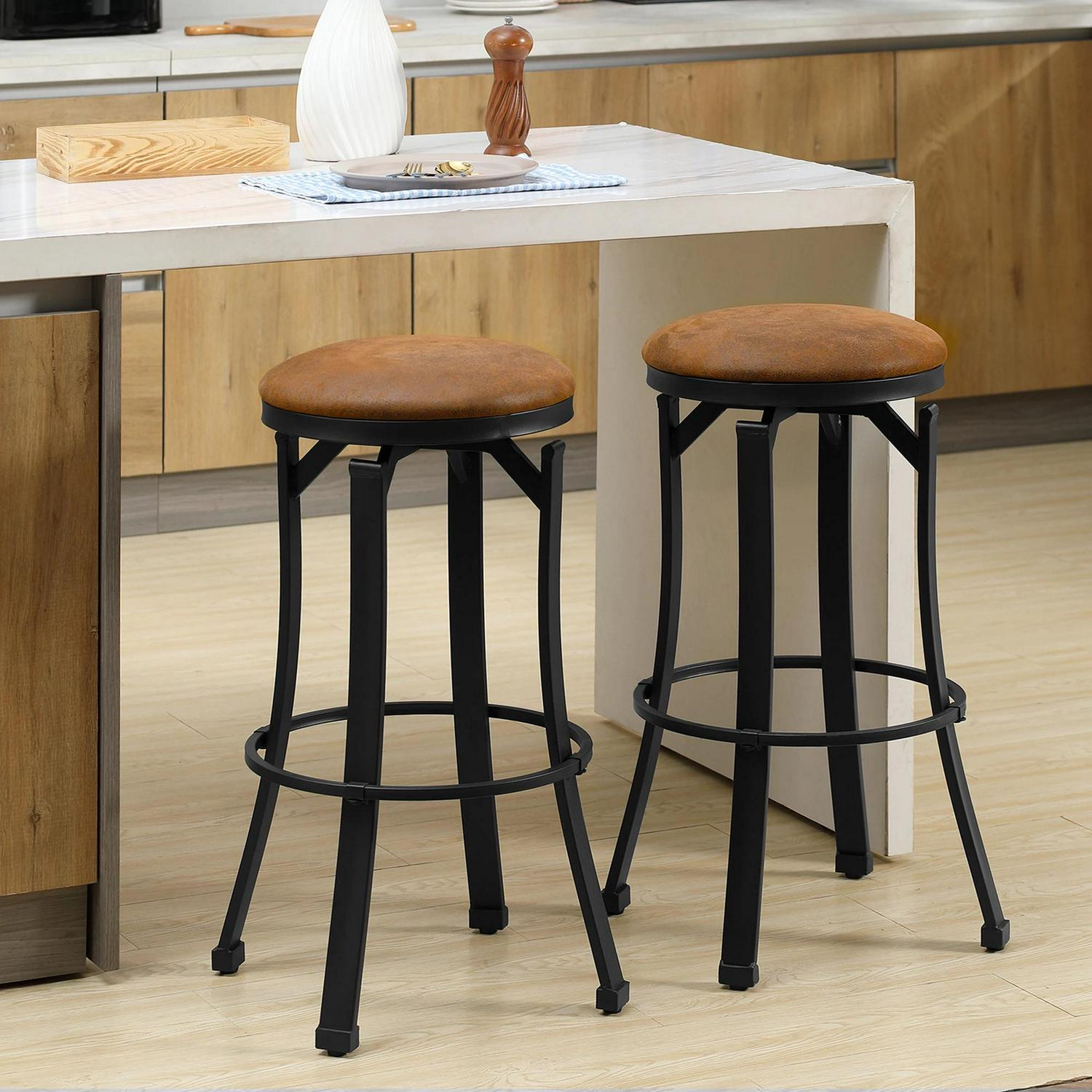 Maximize your dining area potential, thanks to these HOMCOM bar stools. Whether you want to start the morning with a relaxed breakfast or end the night with drinks, they'll bring in some cool retro style into your plans. The steel frames are curved, with darted tops for extra appeal. Padded seats for comfort, with leather-like microfiber cloth for vintage appeal. Complete with a bottom bar to rest legs and feet.