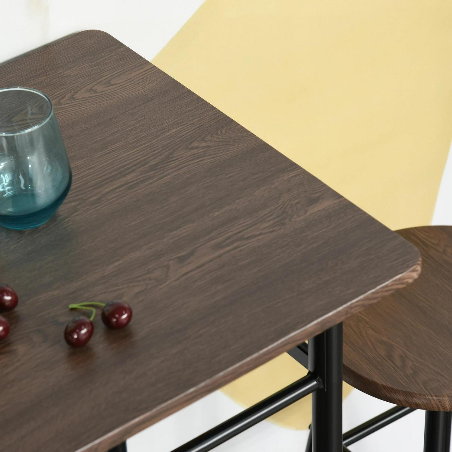 - Set is formed of bar table and two matching stools. • Compact size perfect for smaller spaces