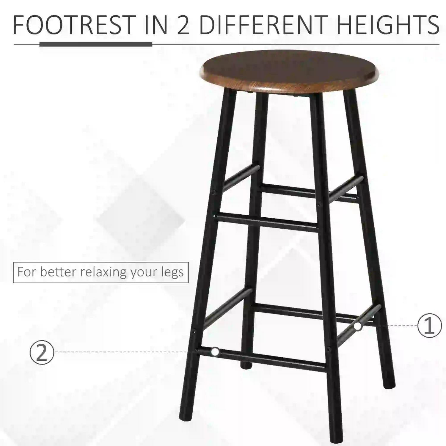 Relax with friends the right way - put this three-piece set from HOMCOM into action. It's formed of a bar table and two matching chairs, with the chairs tucking neatly underneath for a compact size when not in use. The thick and flat MDF table and seat tops can be reliably used everyday, with the steel frame ensuring a tough structure. A great addition for all home and small dining spaces.
