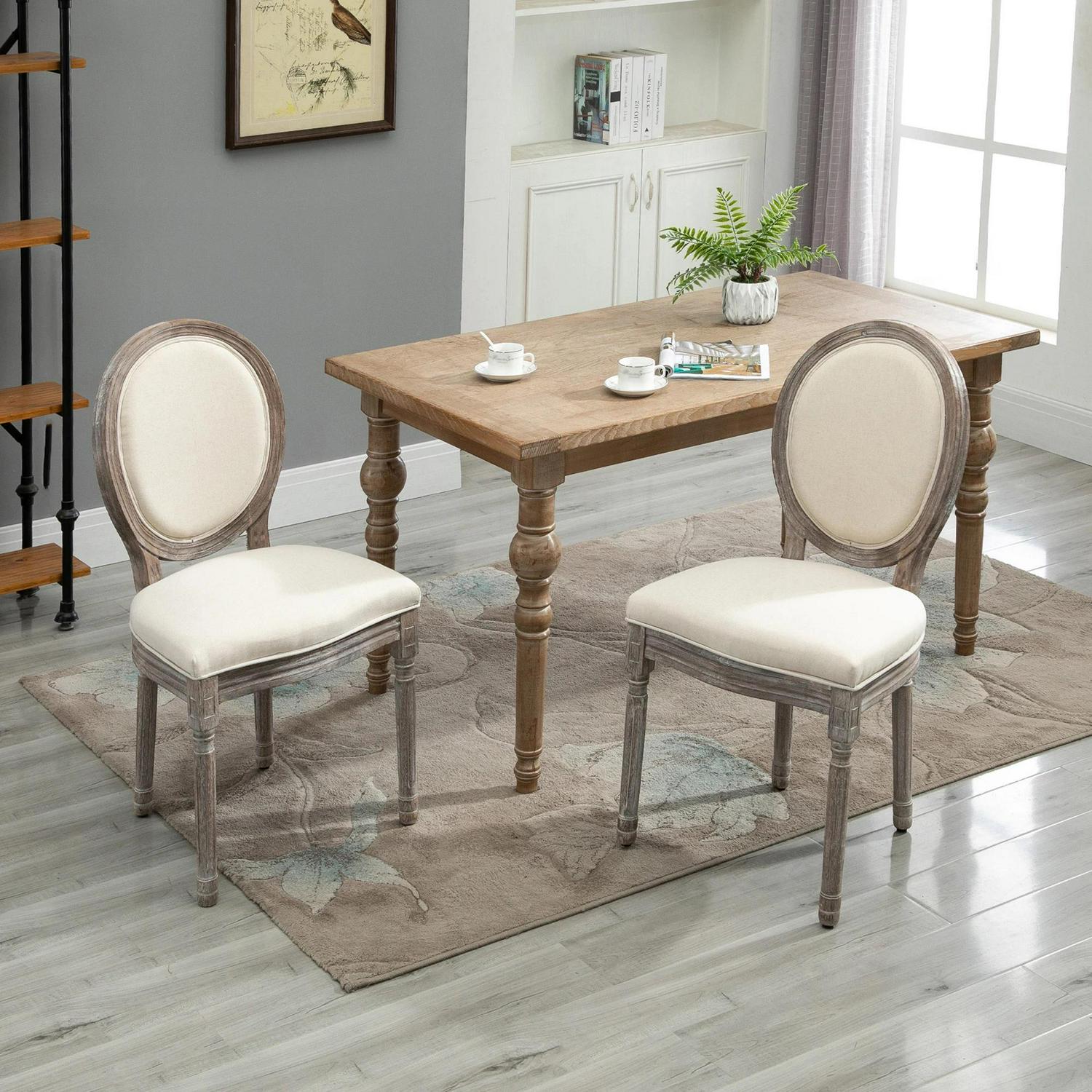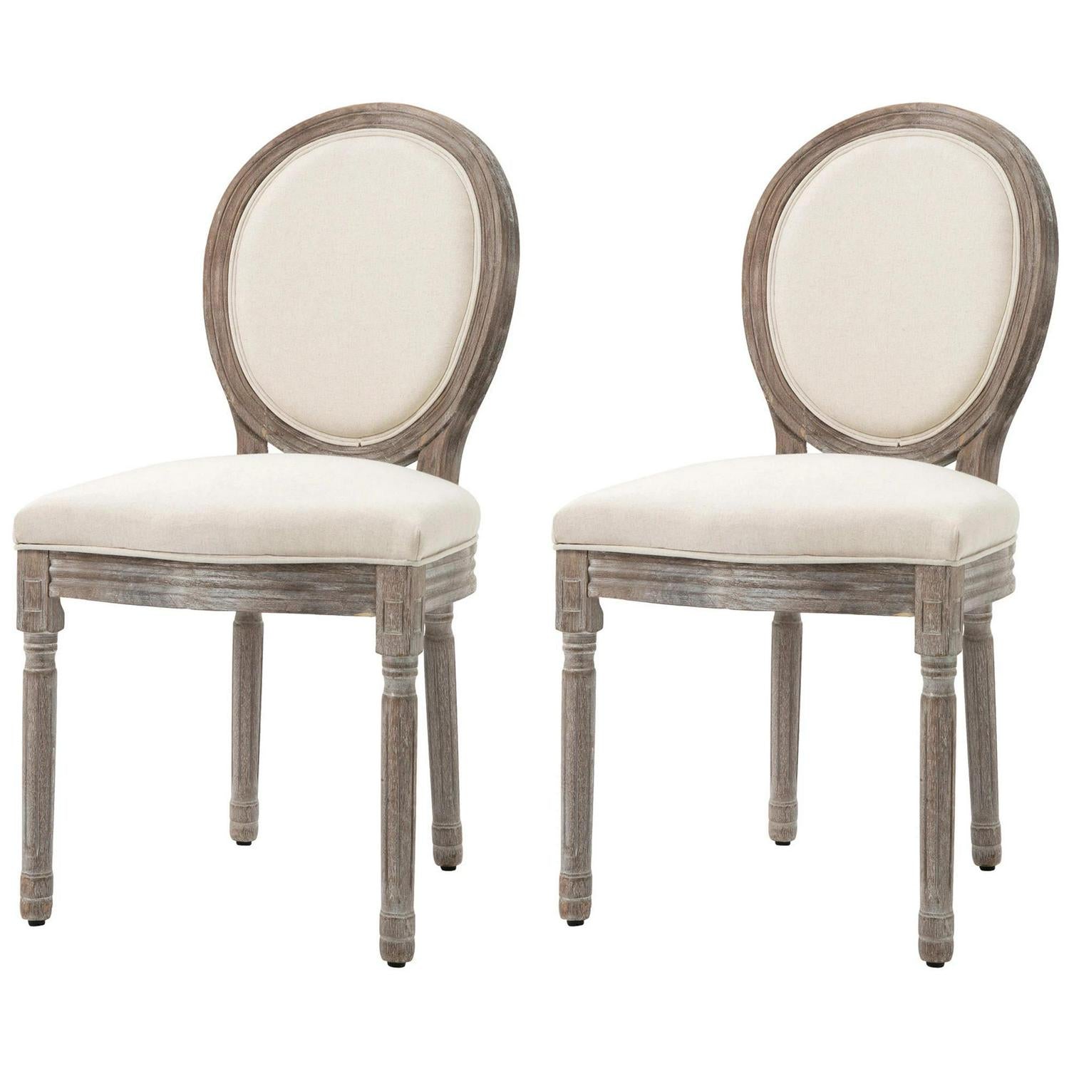 Fort the perfect set of chairs to infuse elegance into your home and beyond, look to this pair from HOMCOM. Using solid wood for the frame and legs to ensure everyday durability, each chair is crafted into a traditional French style which will never go out of style. The curved back provides support when you lean back, and both the seat and back feature a foam filled pad so you can sit comfortably. Each chair is finished with foot pads to provide extra balance, whilst protecting your floor. An effortless blend of beauty and comfort to love for years to come.
