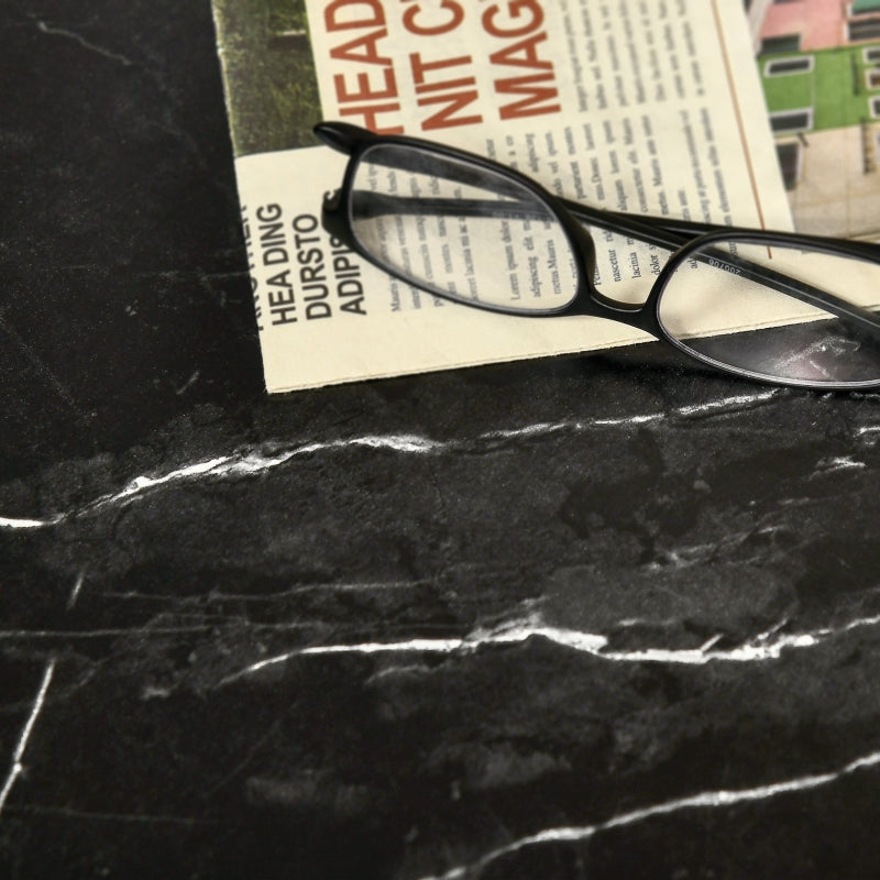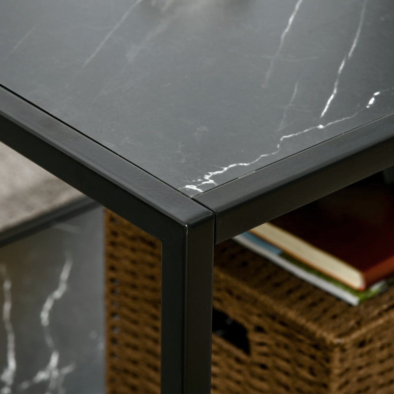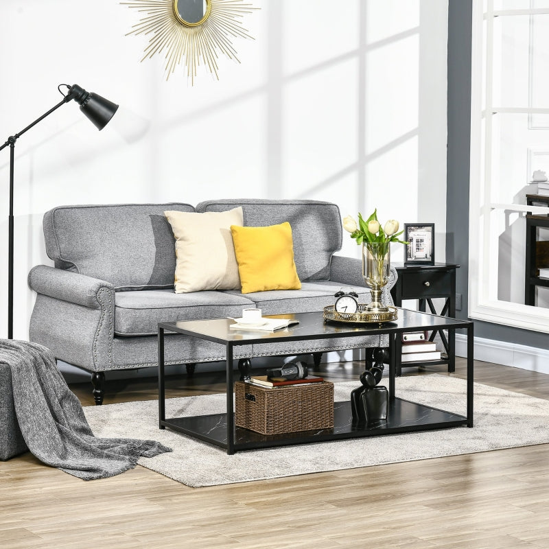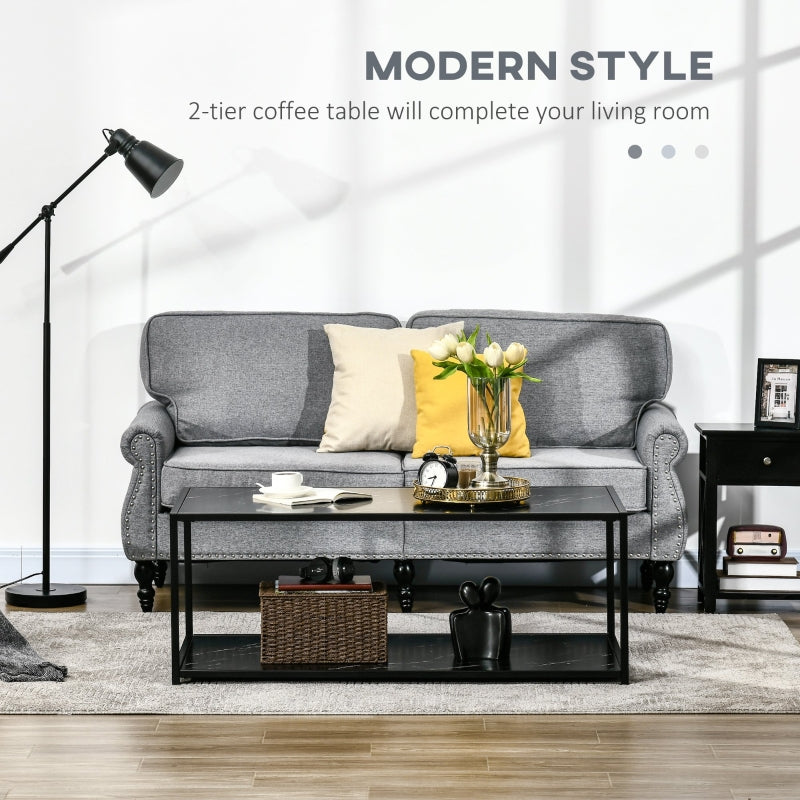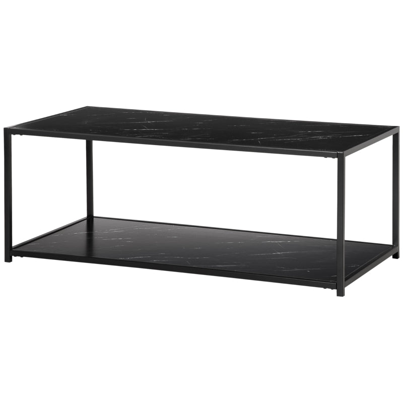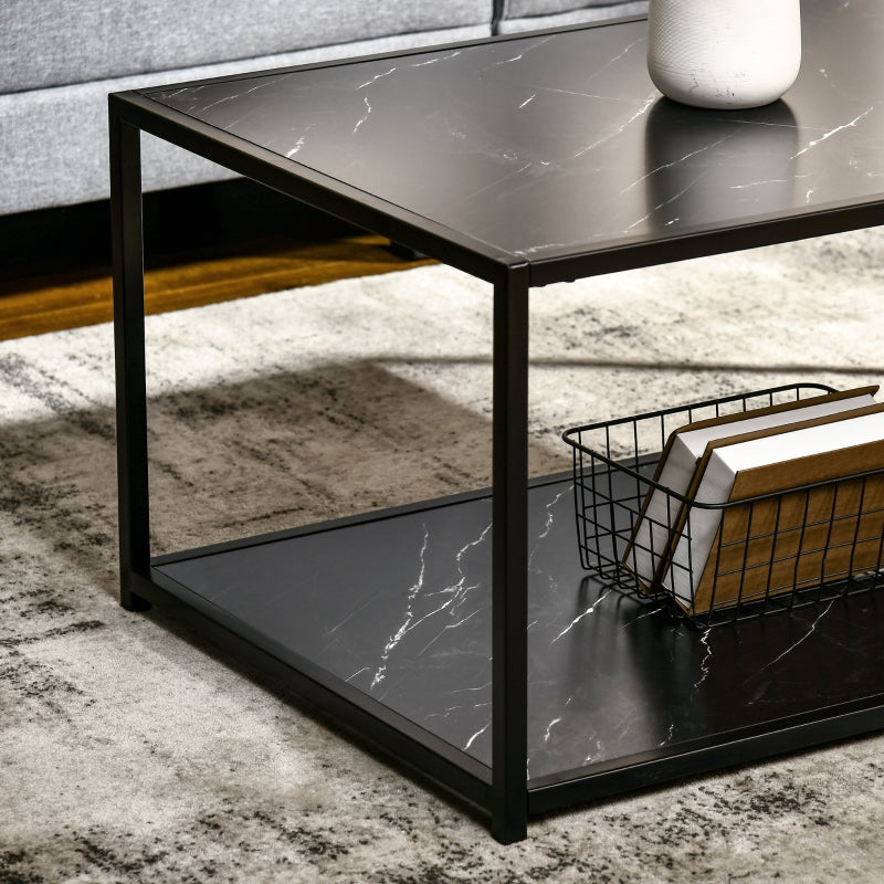 Compliment your home with this HOMCOM coffee table with storage, which has faux marble panels for a decorative touch. There's a tabletop and a bottom shelf, so you can place your flowers, coffee and ornaments on the top, whilst using the bottom for books, magazines and other household items, keeping your home tidy and clutter-free. Made with a strong steel frame, the cocktail table can hold up to 30kg whatever is placed there, will be secure. This low coffee table will bring your room to life.