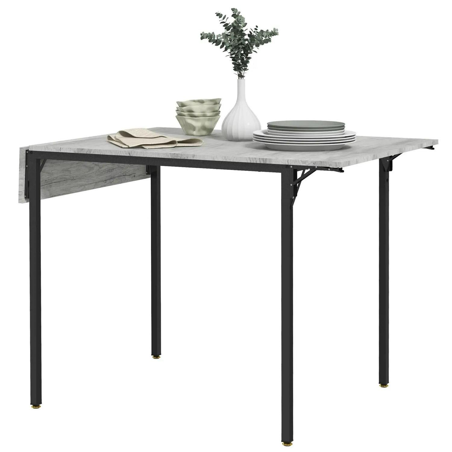 - Metal frame for a strong core, foldable dining table also has handy adjustable feet