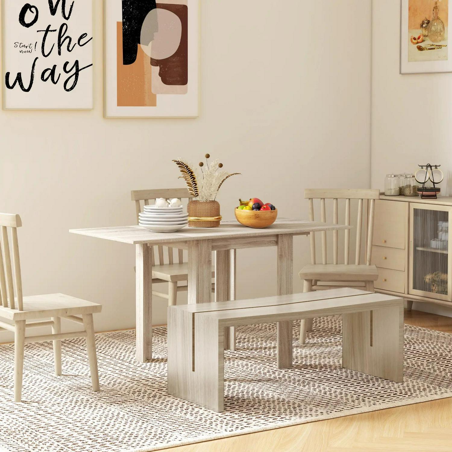 - Drop leaf dining table: two sides lift up, from two people to four-seater size