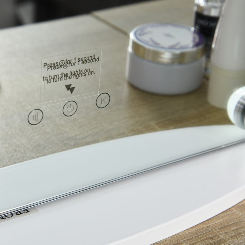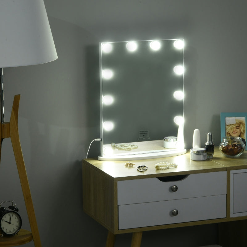 Be the star of your everyday life with this glamorous Hollywood mirror from HOMCOM. This classic design is a must for every bedroom and dressing space - with its large and clear mirror, surrounded by 12 LED bulbs for the perfect amount of illumination to get ready easily with plenty of light. Each bulb is dimmable and can be set to three different shades - warm white, white and cold white - perfect for day and night use. It's fitted on a base to keep it steady, and is finished with a small middle button for easy operation. Please note, this mirror is powered by USB plug which is included.
