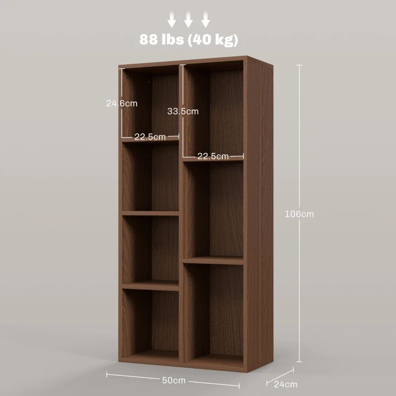 Effortlessly compatible for every home, this HOMCOM bookcase is an essential for your space. With seven 22.5 x 22cm storage cubes, there's plenty of room to hold and display plenty of items. The particle board structure makes this a robust piece, with anti-tipping straps included for safety.