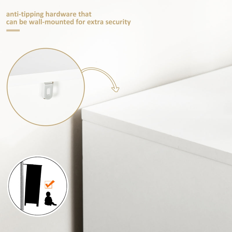 Functional and modern, this HOMCOM storage cabinet is a great addition for many indoor spaces. Comes with two drawers and a large upper shelf - room for storing and showing off your favourite pieces. Particle board frame is sturdy and durable, with anti-tipping straps included for safety. Complete with a four-legged base.