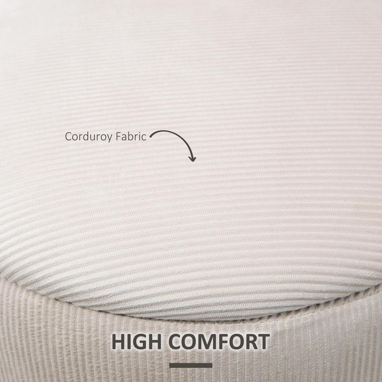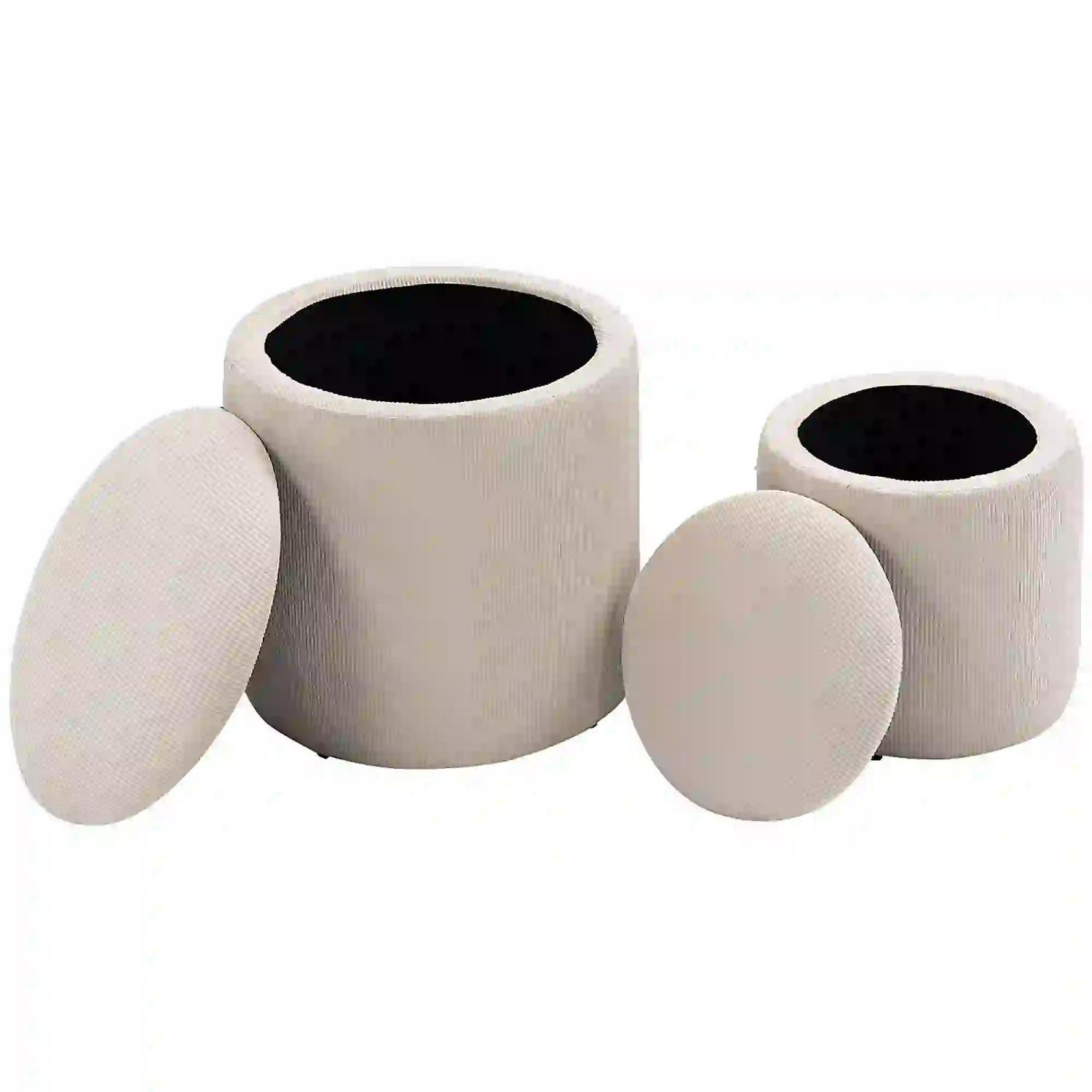 Comfort and handy storage, multifunctional with these two HOMCOM ottomans. Set comes with a large and a small; both are wrapped in corduroy upholstery for soft style. The removable tops are padded so you can sit comfortably. Both stools come with non-slip foot pads to gently protect the floor as they stand.