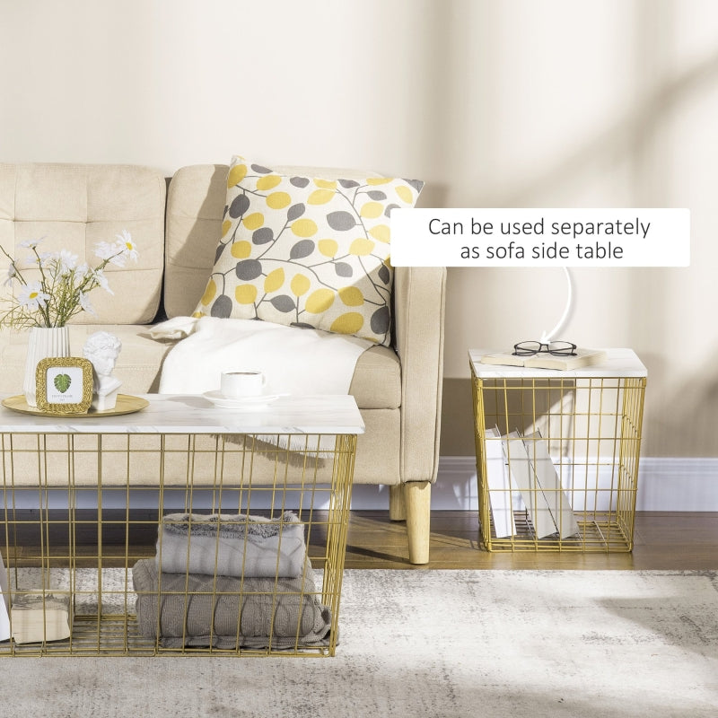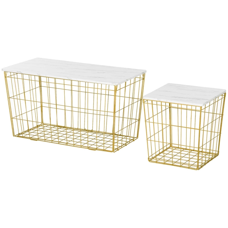 Use together or alone - these basket-base tables, from HOMCOM, are the perfect decoration in your home. The sturdy steel wire frame makes each table suitable for your daily use. They can be used as a coffee table set, bedside table, storage basket, or even as side tables. The marble-effect tops lift off, so you can use the bottoms as handy storage - magazines, blankets and more. Easy to assemble, you have these ready to go in little time.