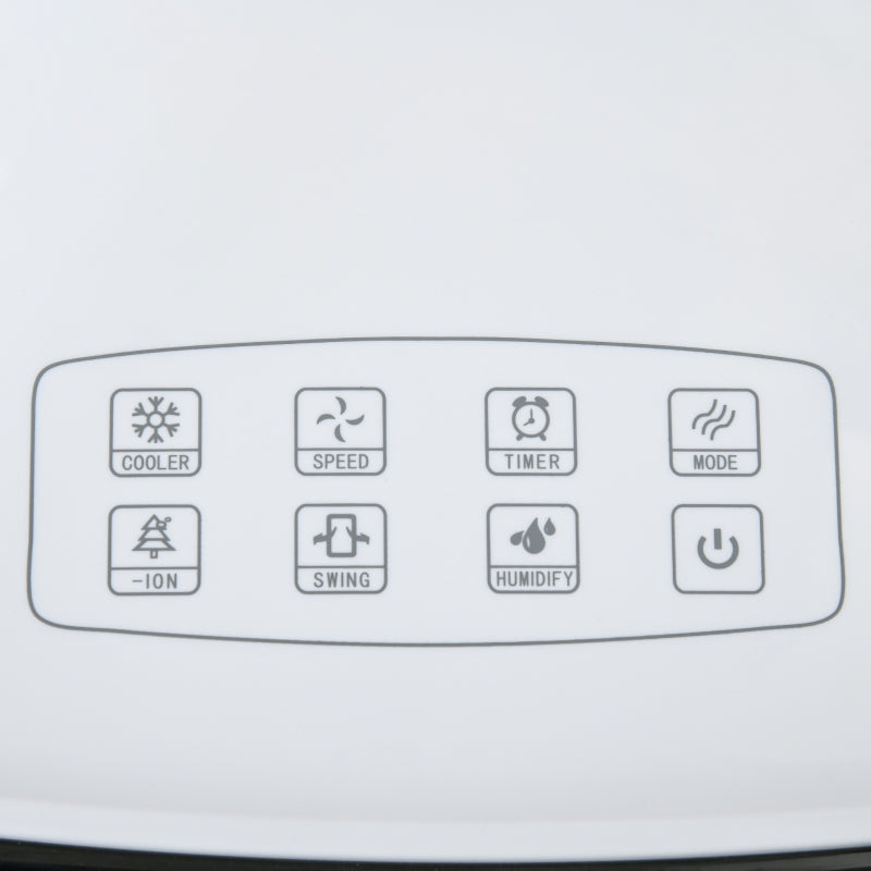 - LED panel displays on/off, speed, modes, swing, timer, cooling, humidification, anion
