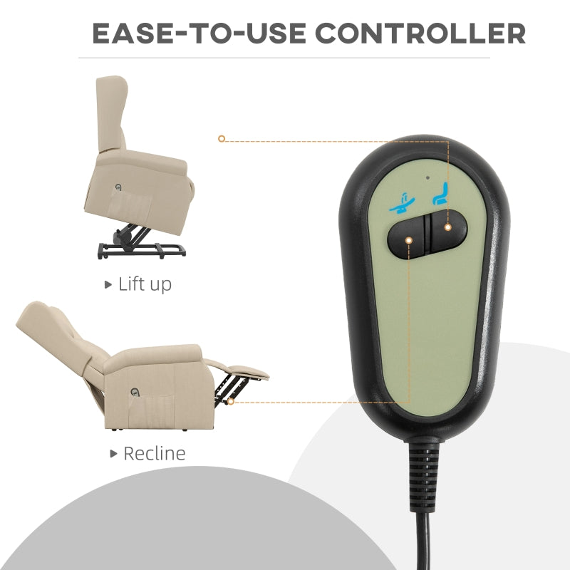 Bring assistance into your life whilst keeping your independence: look to this HOMCOM lift-up armchair. Steel forms the frame for a strong structure which supports up to 200kg. Thickly padded all over to keep you comfortable, it features a 135° reclining back and footrest: control them with the remote to set chair in a position you want. The gentle lifting angle makes it easy to sit down and get out of the chair. Finished with smooth linen-look upholstery.