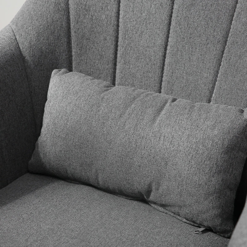 Make those all-important relaxation times at home better than ever before, thanks to this on-trend swivel chair from HOMCOM. The seat is formed into a retro tub design, which provides plenty of room to sit, with a high back and armrests to offer support whilst in use. The whole frame is made from steel, making it very strong and durable for prolonged everyday use, with the large round base ensuring the seat keeps balanced and upright. Filled with sponge for comfort, it is wrapped in linen for a smooth feel and easy maintenance and comes with a seat cushion and small back cushion to finish.