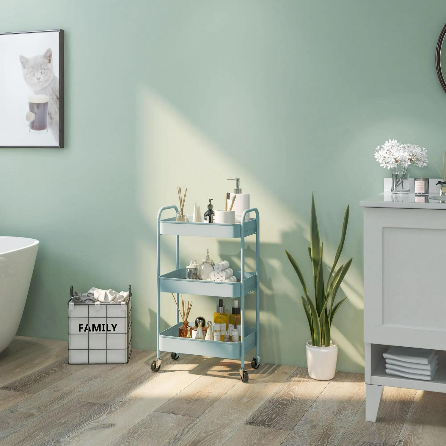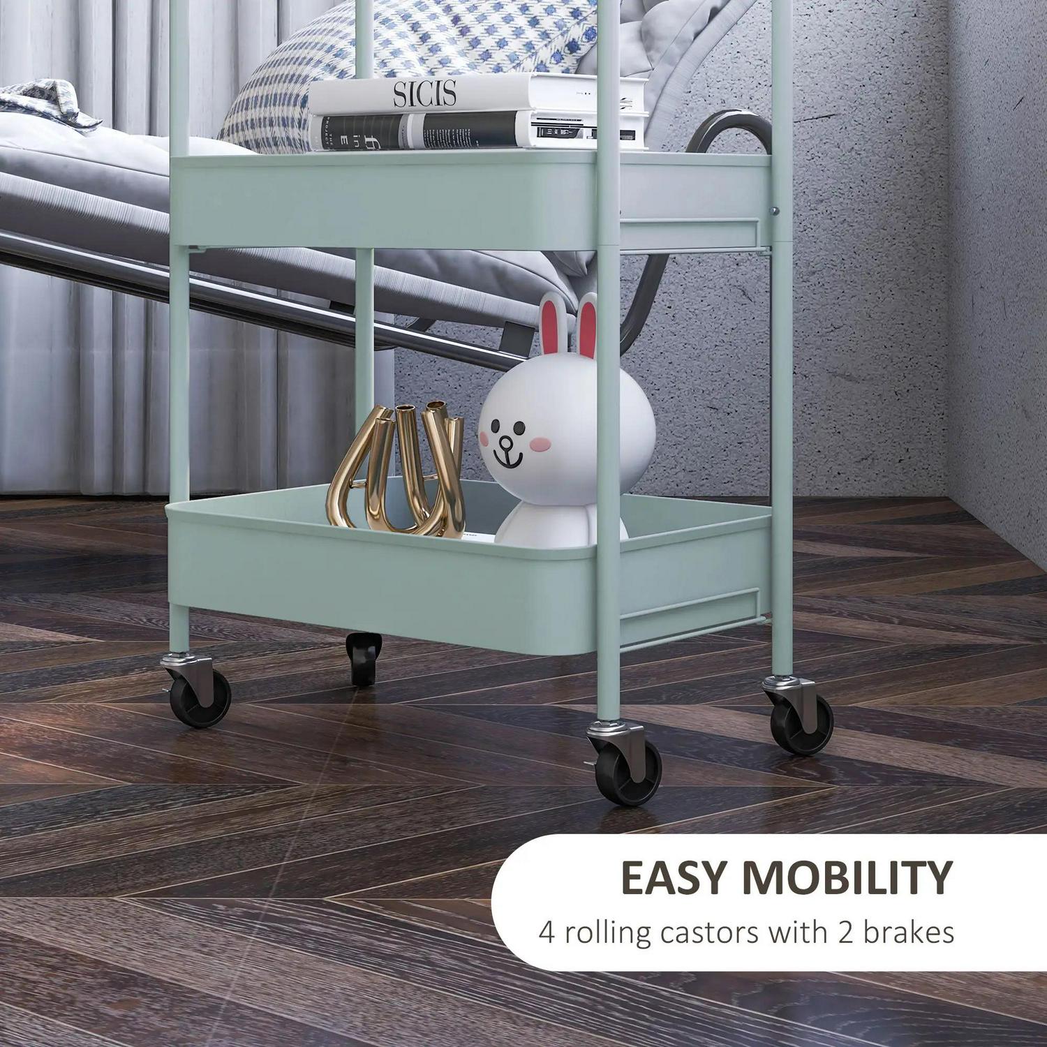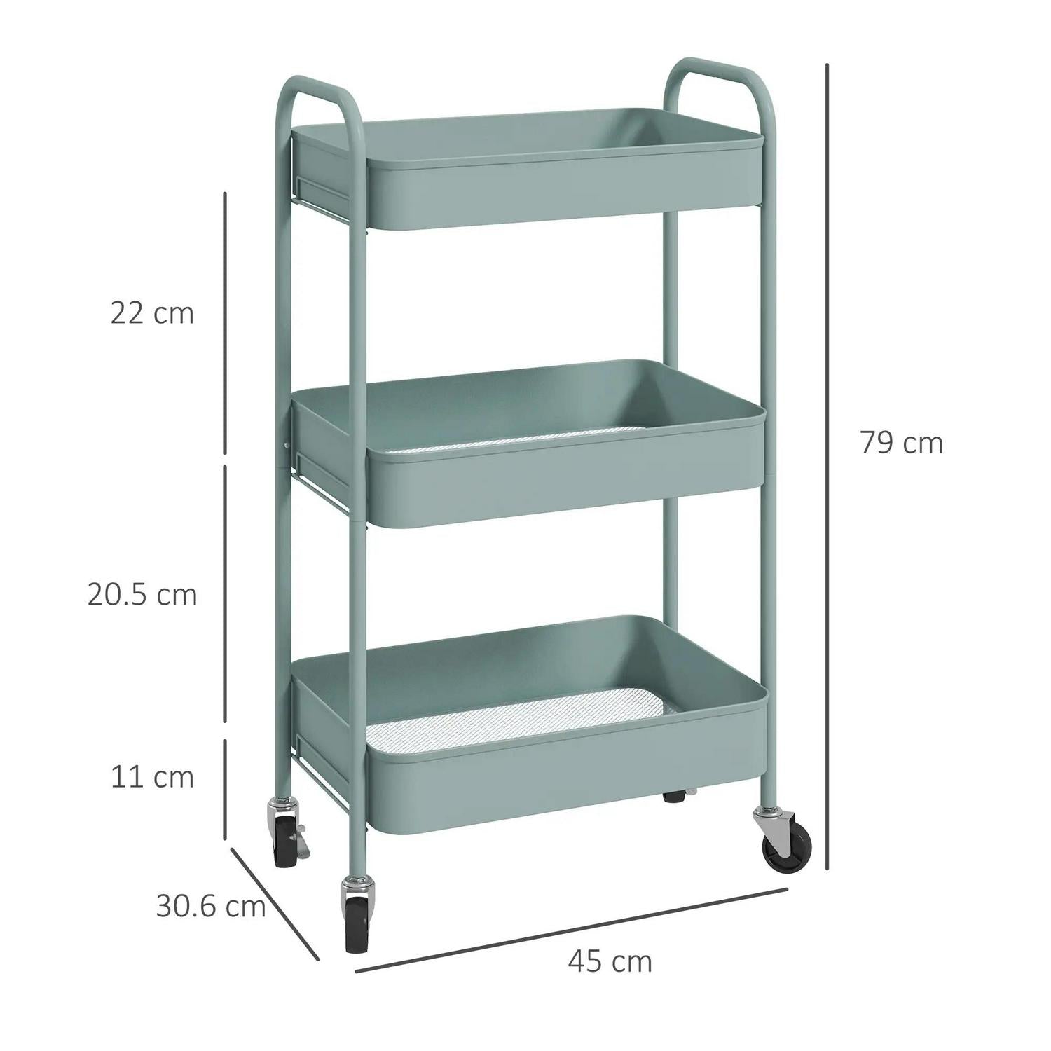 For wherever you need that touch extra holding space, look to this HOMCOM three-tier trolley. This rolling cart comes with a small, medium and large basket - there's plenty of open storage to hold and organise whatever you need, across the home. As a drinks trolley—laundry storage—make-up cart and so much more. Made from steel, this is a tough piece; utility cart is complete with four wheels and two breaks.