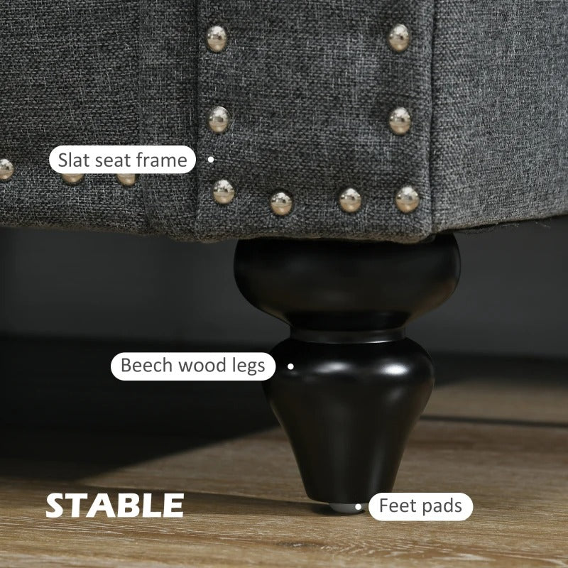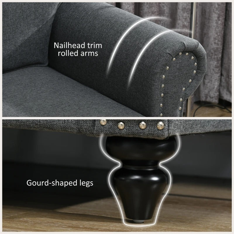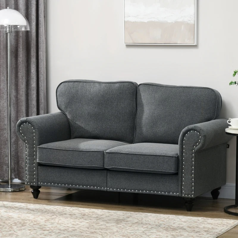 Take comfort back a touch with this HOMCOM Mid-Century sofa. The simple, slightly retro design brings a touch of old school character into your space. Filled with 14cm foam padding for comfort, with pocket springs to keep it firm and help retain the shape. Look to the metal studs on the arms for a polished edge. The love seat is complete with wooden legs for strong support.