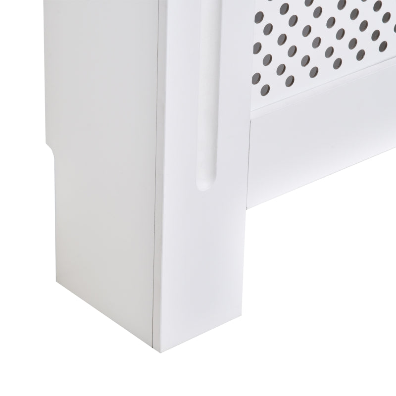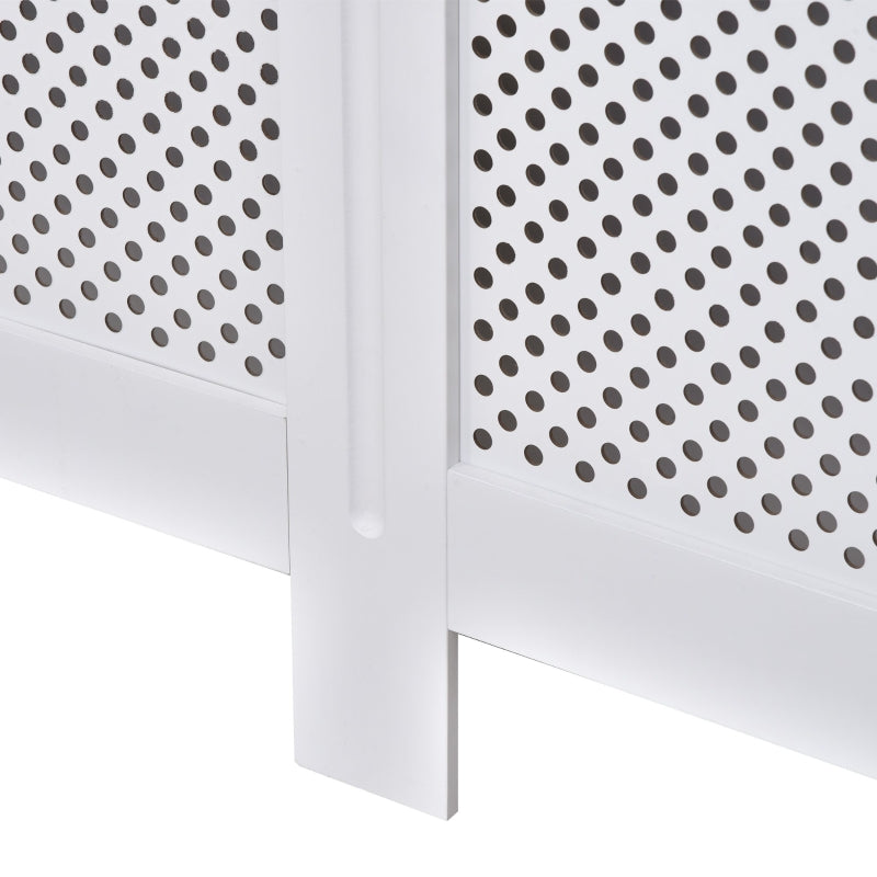 - Made of MDF in round shape grill Simple and contemporary design Ideal to stylize the radiator with modern and stylish outlook Offer many benefits, such as protecting hands and hide old radiators Offer extra surface space to display belongings With white elegant front and wooden carving back Assembly required