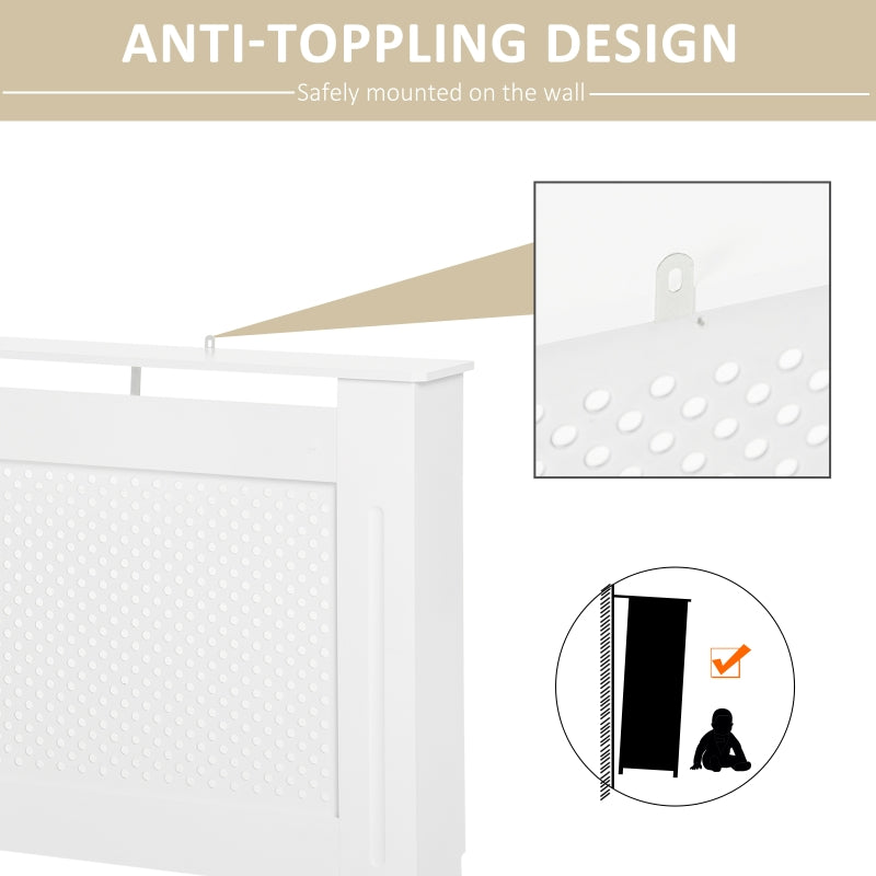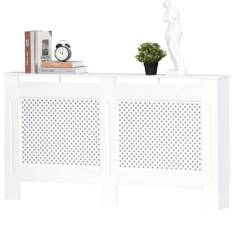 This white painted cabinet from HOMCOM is a must for any home, cover your unsightly radiators and give your room a touch of elegance. Made with MDF board with a round shape grill, it is finished in white as a neutral colour to match any décor. The radiator cover cabinet has a front grill design to look great and still radiate the heat efficiently and still have enough access to any controls attached. It's easy to assemble and will look great in any décor.