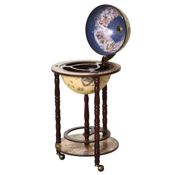 - Main globe, covered with a beautiful old-style world map sticker, opens up to reveal the storage compartments