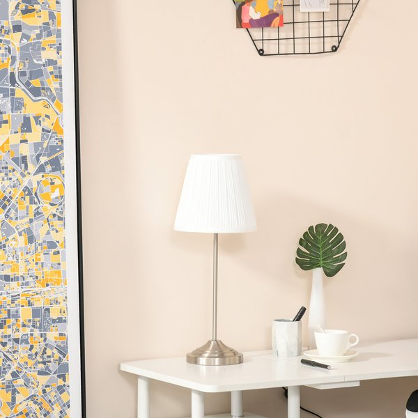 - 1x Modern Table Lamp with Steel Base Pleated Fabric Lampshade for Home Office