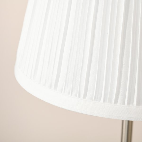 Bring glamour to the bedside table with this lamp from. Pleated fabric lampshade is chic and stylish while making the light softy and welcoming. Steel base and pole keep the light balanced and stable. Its clear and fragmented finish creates a beautiful shining aura at night. Fitted with a standard E27 bulb base, and is controlled by the switch on the electrical cord.