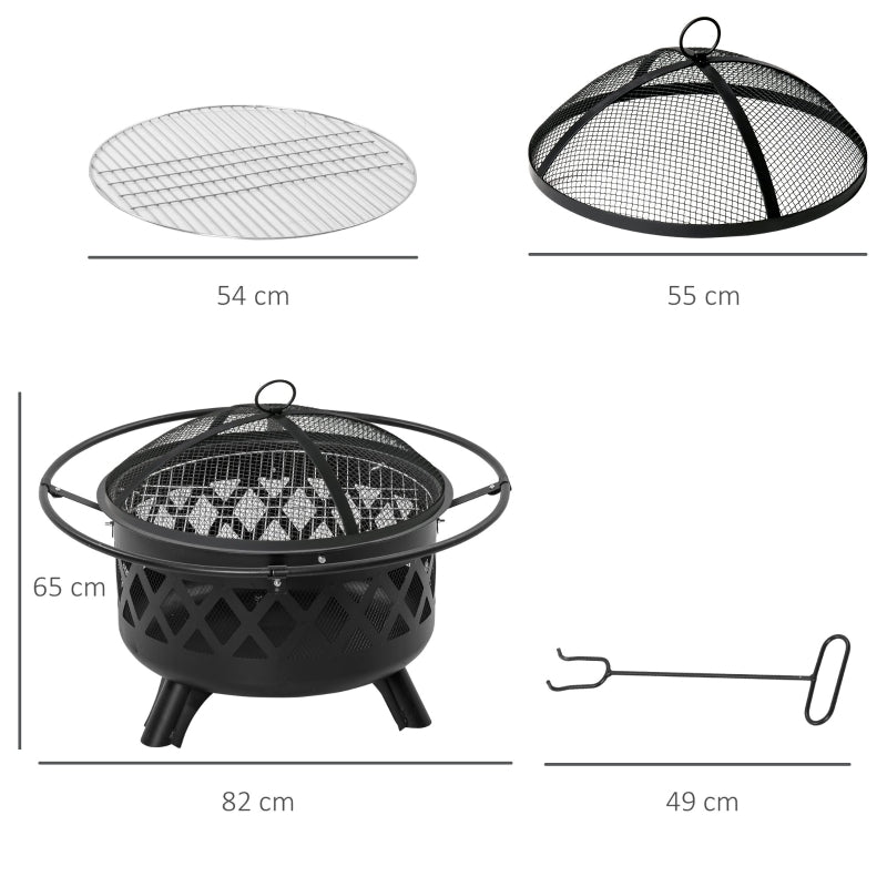 Bring warmth and ambience to your patio - whilst cooking delicious food with this Outsunny fire pit BBQ. The top mesh means you can hold food on there, whilst it's filled with burning fuel. You can then extend its use into the evening and night as it brings warmth to your outdoors - or even roast some marshmallows! The painted steel structure of the garden fire pits withstands up to 600 for high cooking and warming temperature. The fire bowls for garden come with a mesh lid and fire poker.