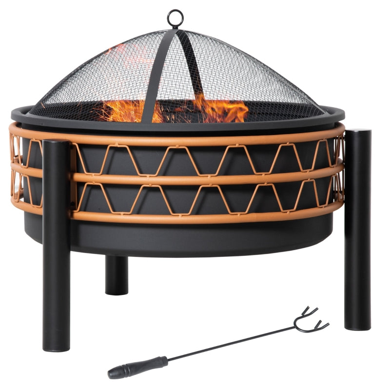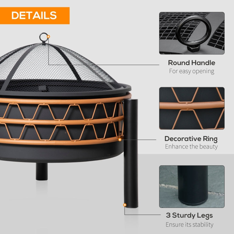Spend time outdoors in warmth with the fire bowls for garden from Outsunny. The orange outer ring adds a contrasting stylish element to the design. The spark screen cover and a poker ensures safety. Made from powder coated steel, the frame is strong and suitable for outdoor use, crafted with a large bowl to hold plenty of firewood and keep you and friends warm. Comes with a fire poker to safely move the logs.