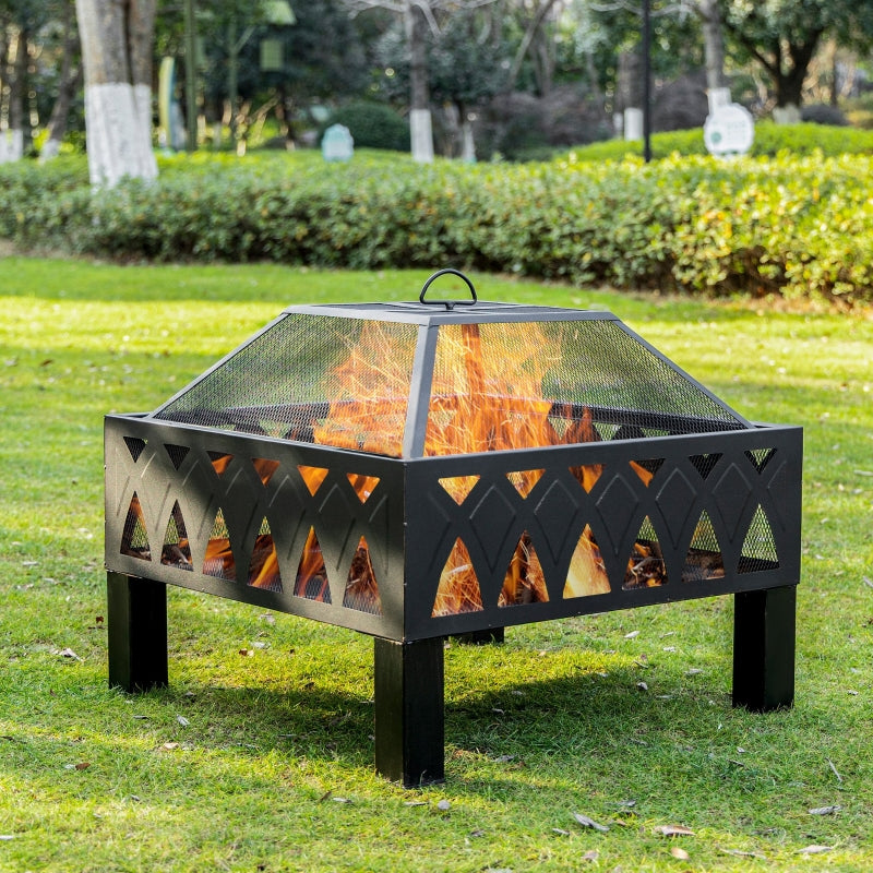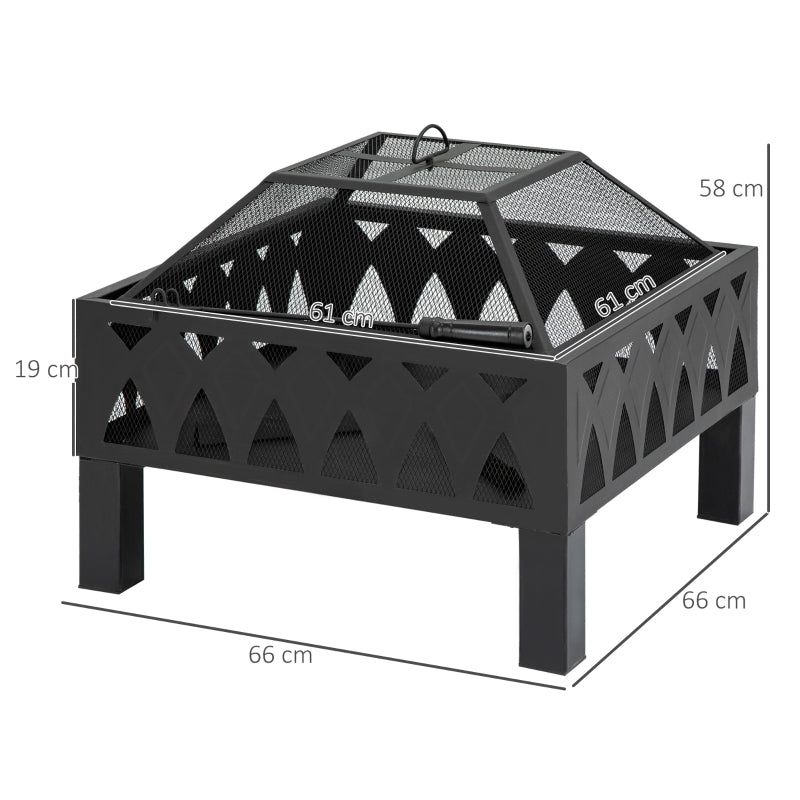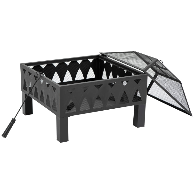 Creating a leisure time, almost anytime, with your family, thanks to the garden fire pits from Outsunny. The square basin body is cool, with geometric cut-out patterns to add style. Comes with a mesh cover to help sparks fly out and hurt you. Strong metal for long-time use. Stylish and practical, this fire bowl for garden is a must for making cooler outdoor times bearable.