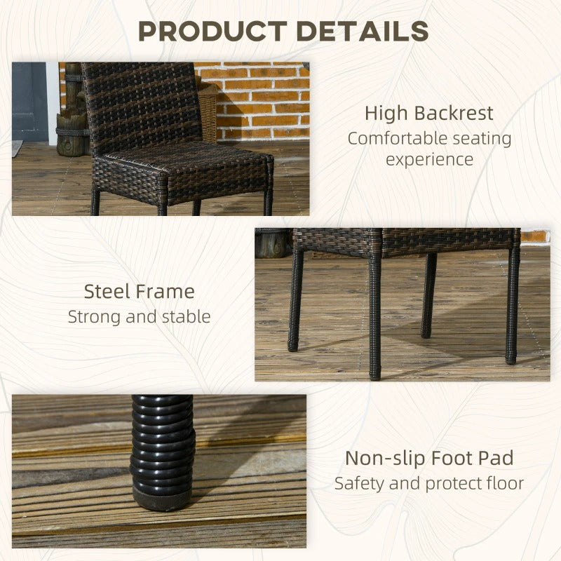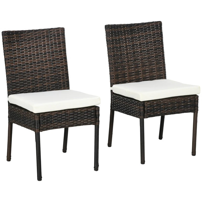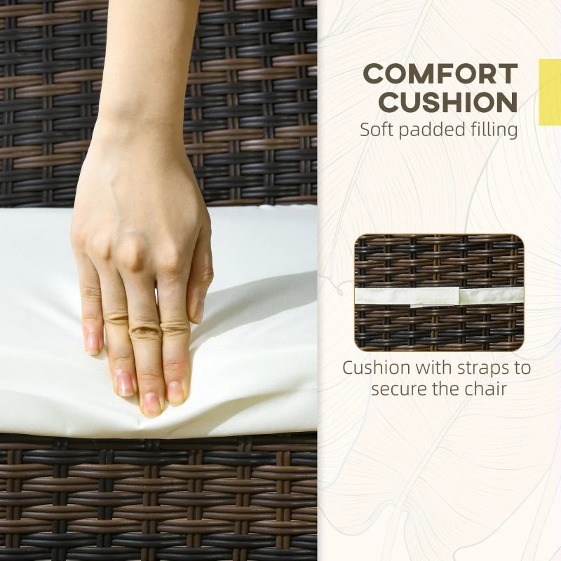 A must for your garden: these Outsunny chairs. Powder coated metal frames for a strong core, wrapped in rattan for style. High backs for support. Complete with a cushion for comfort.