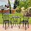No matter how short you are on space in your home and outdoors, this three-piece Stamford set from Outsunny will give you the perfect spot to dine and relax. It s formed of two bistro chairs and a matching table, with cast aluminium forming the frame of all three pieces to ensure they are sturdy and tough, as well as being resistant to rusting and mild everyday wear-and-tear. Round in shape, the table features a middle hole to keep a sun parasol securely in place, with the back of the chairs showcasing a cut-out design for an attractive finish whether seated or not. Ideal for flats and apartments with balconies.