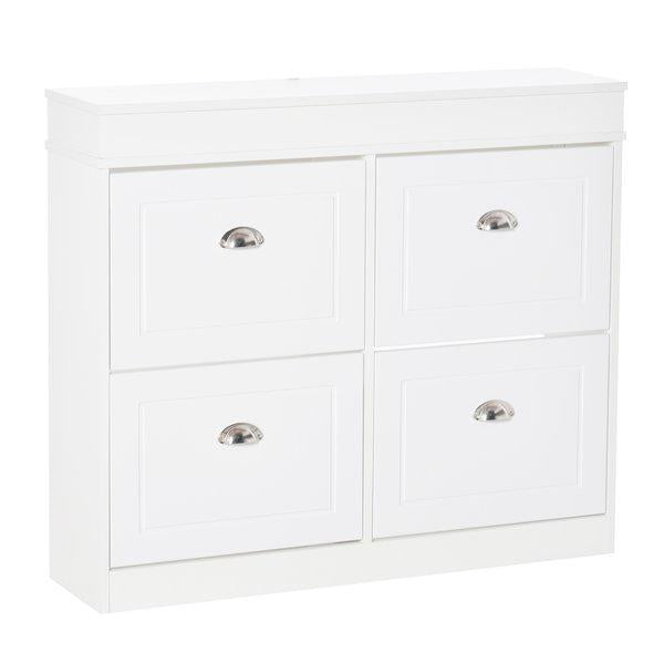 - 1x  Shoe Cabinet With 4 Flip Drawers Storage Cupboard Adjustable Shelf - White