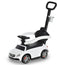 Get your child moving with this official Mercedes-Benz push-car walker from. Using sturdy plastic for the body, it is made into a snazzy white and black car design, where a long handle is placed on the back so you can push it easily. The foot-to-floor design of the car encourages them to walk along, helping them gain confidence using their feet and legs. It is fitted with a steering wheel so they can control the direction, removable side barriers so they don't fall when seated and four wheels for smooth movement. It's finished with under-seat storage and a horn button the wheel with realistic sounds. 2 x AA batteries required, not included.